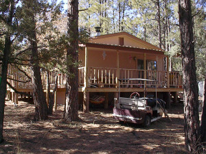Sac 3-13-2 1999 Palm Harbor with 1764 square feet +/- Home has central heating and cooling, water softener, washer/dryer, trash compactor, side-by freezer refrigerator, gas self-cleaning range/oven and dishwasher. This spacious, well-lit home has beautiful vaulted ceilings, double-pane windows, large country kitchen. Large covered deck is ideal for sitting on and having your morning coffee! Deck also has stand-alone, enclosed fire pit for keeping warm on those cool summer evenings. Fenced-in area in back has well-maintained flower garden. A graveled, circular driveway leads to the home, which sits back from the road. Also includes 5500 watt generator, 10x14 storage building and a 30x40x14 outbuilding that will accommodate a motor home and is wired with electricity and door opener. Property has been beautifully thinned according National Forest guidelines. (5/2004) |