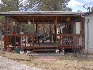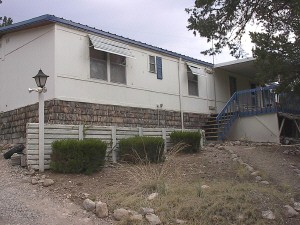 Sac 4-16-6 5.027 +/- acres with a great start to a completed home. Structure is 1000 square feet with kitchen, laundry room, living room and bath -- all of them very decent size. Footings north and south of structure ready for building bedrooms or whatever your needs may be. Water, power and propane are already there so you could occupy house while expanding. Covered deck is 40'x6' on south side with views of Otero Mesa and Cornudas. Ideal for horse property! Good percentage of land is flat and cleared so you can put up corrals right away. (3/2004) |